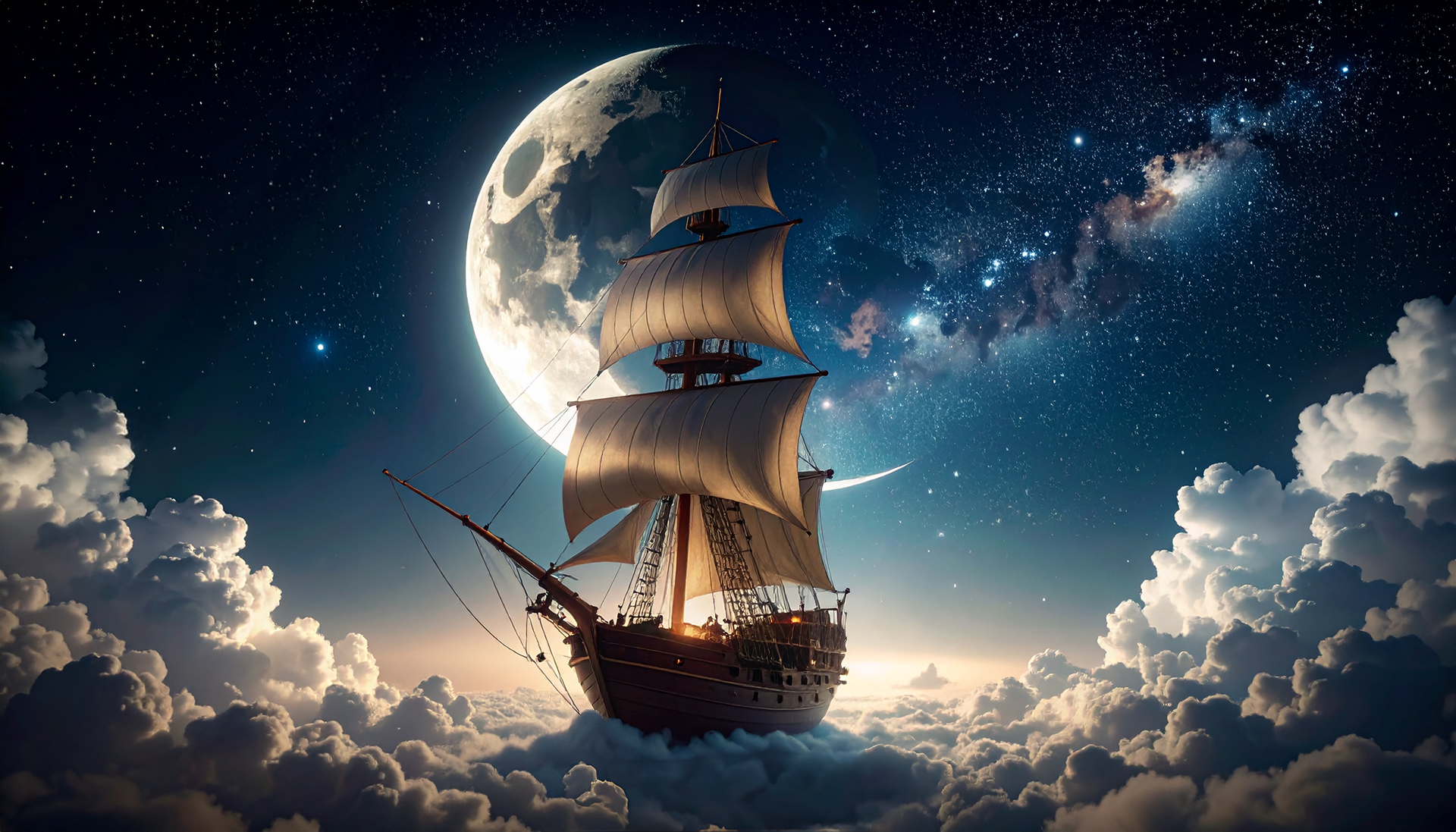Ideation: A ship floating in a sea of clouds. Adobe Firefly