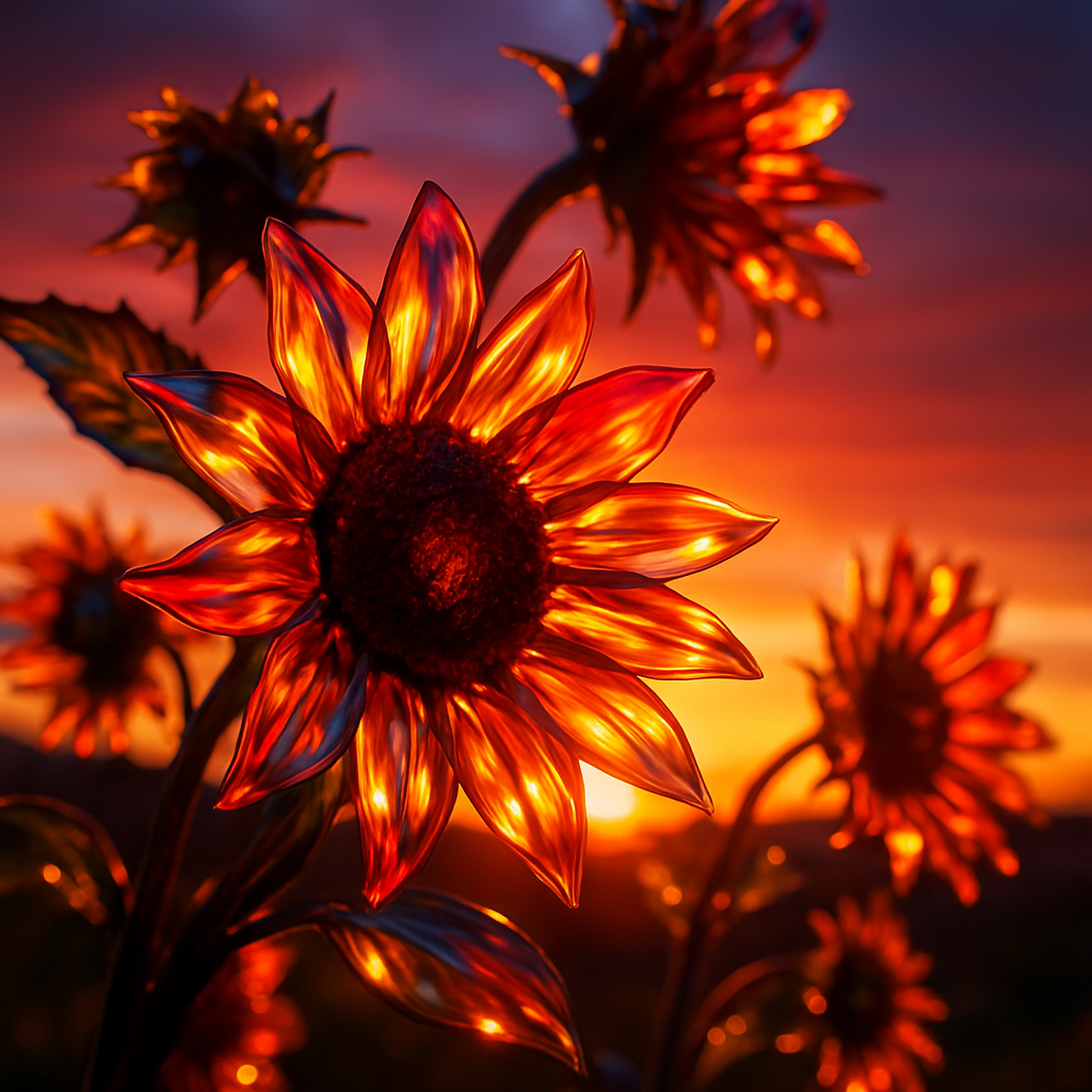 Ideation: Sunflowers made of colored glass at sunset. DALL-E 5